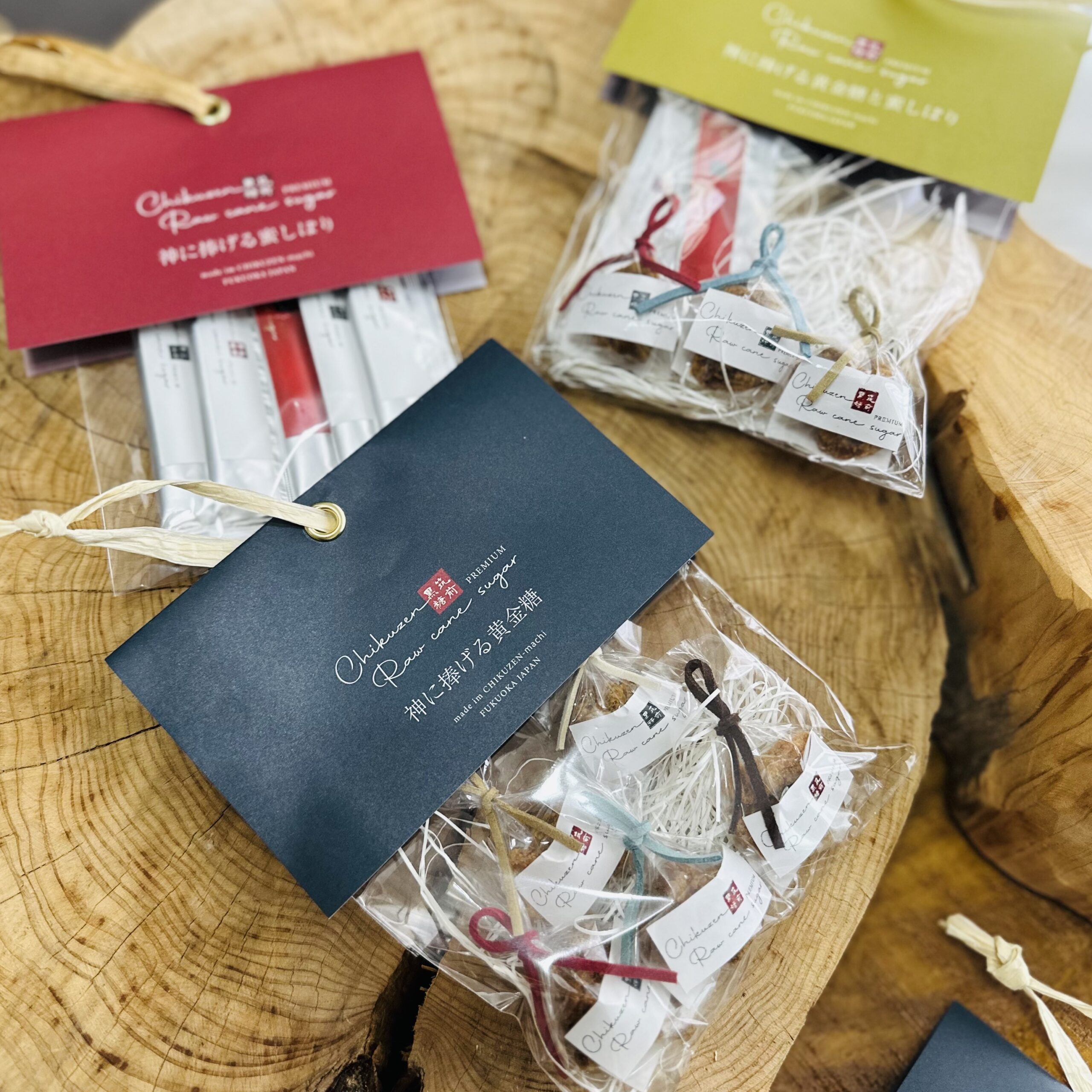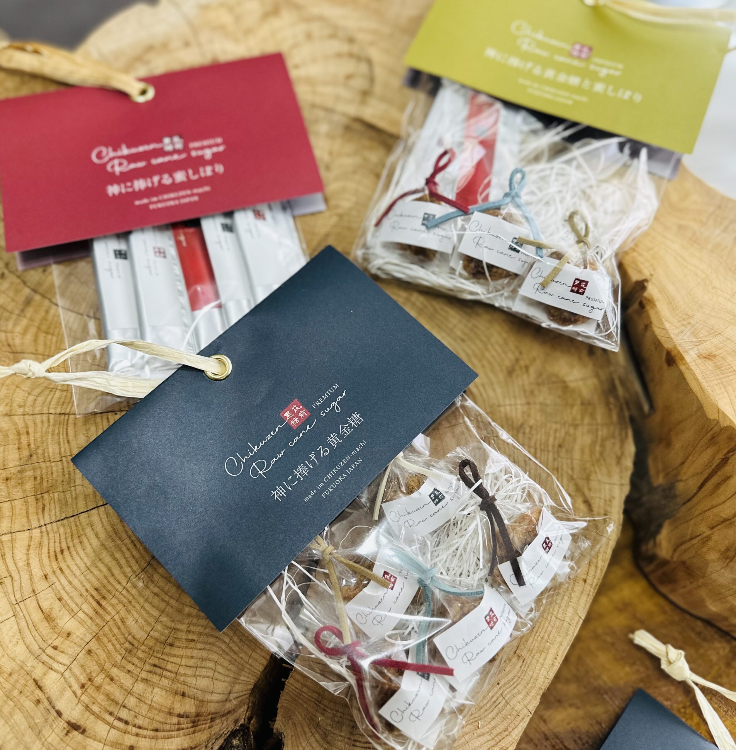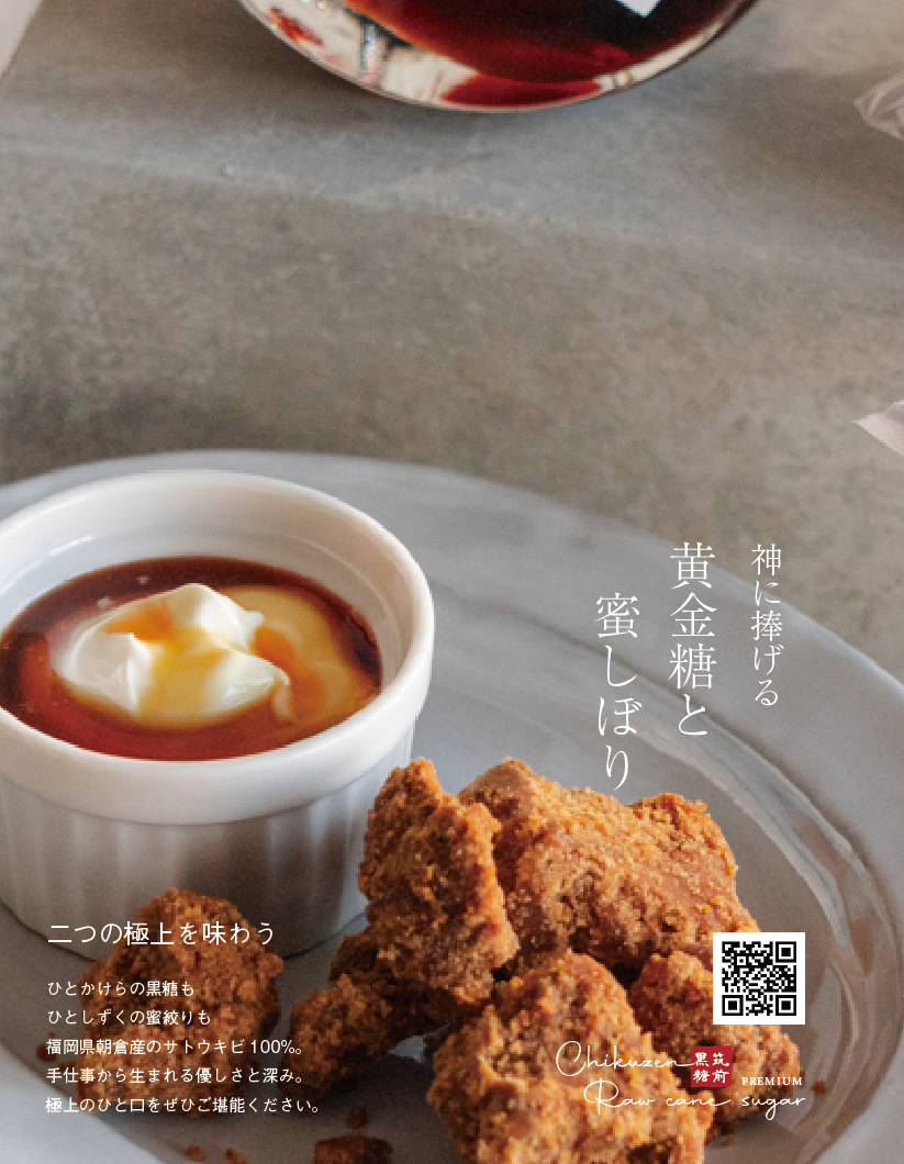 福岡県朝倉地方で黒糖作りの匠が手がける釜焚き黒糖と蜜しぼり。有機栽培されるサトウキビから丁寧に手仕事で作られる黒糖は、石灰不使用でほろりと崩れる味わいが癖になる。同じ地域の障がい者就労支援施設ちくぜん野の花で包装されて販売される商品をブランディング。あわせて販売利益がない状態を改善すべく価格も改定。優しい手仕事の循環で、サステナブルな手土産として選ばれる商品へ。